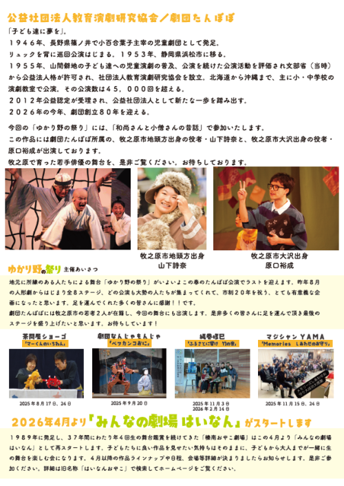 更新日 2026年3月13日 榛南おやこ劇場ホームページへ